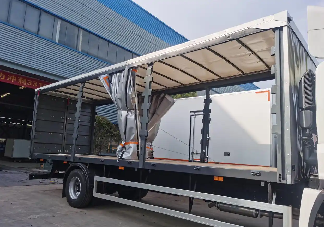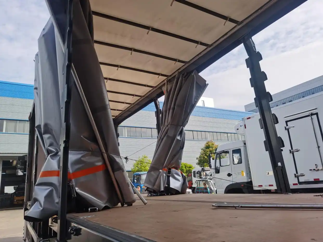 Truck advantages: flexible and versatile, maximizing space utilizationThe side curtain tarpaulin compartment is one of the core advantages of this car. The design of the side curtain tarpaulin makes the loading and unloading of the carriage more flexible and convenient, making it easy to load and unload both large and small goods. At the same time, the space utilization rate of the side curtain tarpaulin carriage is high, which can fully utilize the internal space of the carriage and improve the transportation volume of goods. In addition, the carriage is equipped with multiple fixing devices inside, which can effectively fix the goods and prevent them from moving and being damaged during transportation.